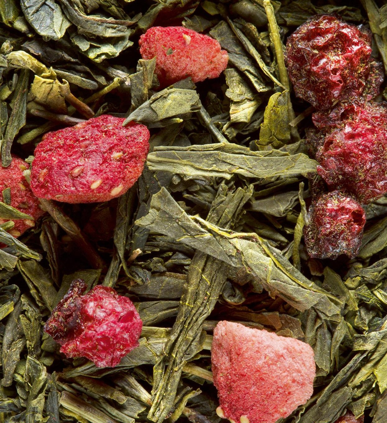 Ingredienti: Tè verde (Camellia sinensis), pezzetti di fragola, ribes rosso, aromi (ribes rosso, fragola selvatica, mirtillo, lampone, ribes nero, ciliegia, menta piperita)