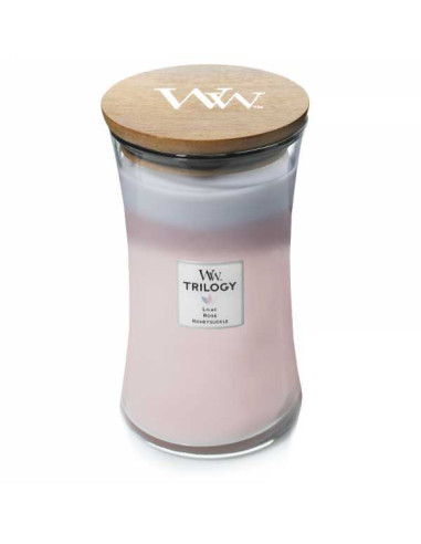 Trilogy Botanical Garden, candela della linea WoodWick Trilogy, composta da 3 fragranze: