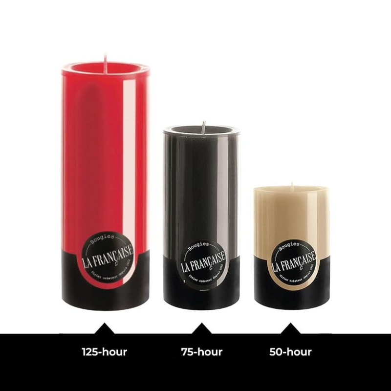 La candela cilindrica 125h Bougies La Française è la scelta ideale per chi desidera una candela decorativa di grande presenza e lunga durata. Con fino a 125 ore di combustione, garantisce luce costante e atmosfera raffinata per molte ore consecutive.