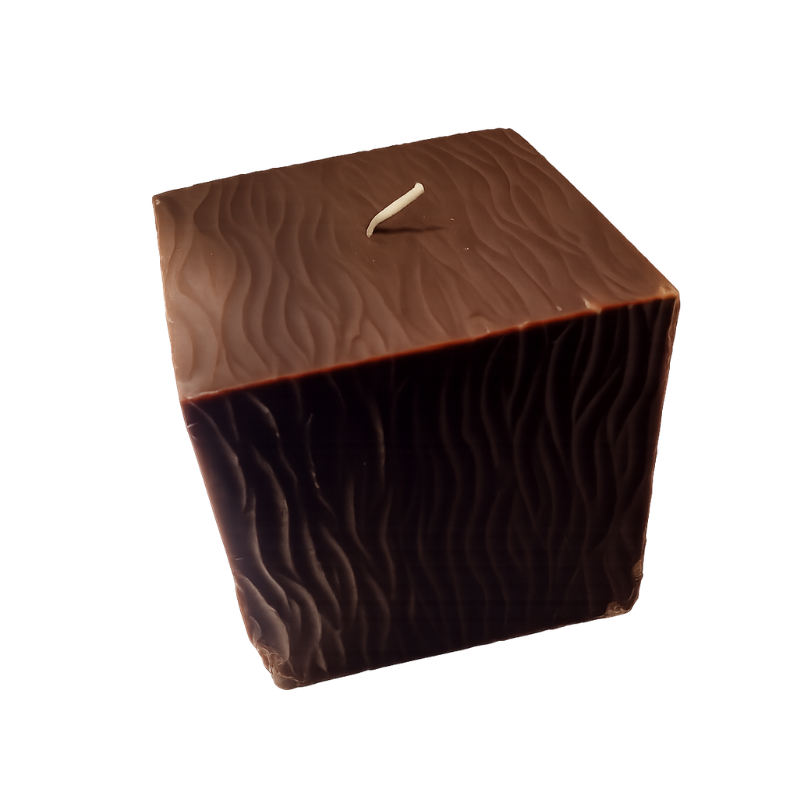 Candela Cubo Texturizzata, Design Materico, Presenza Scultorea, Atmosfera Avvolgente