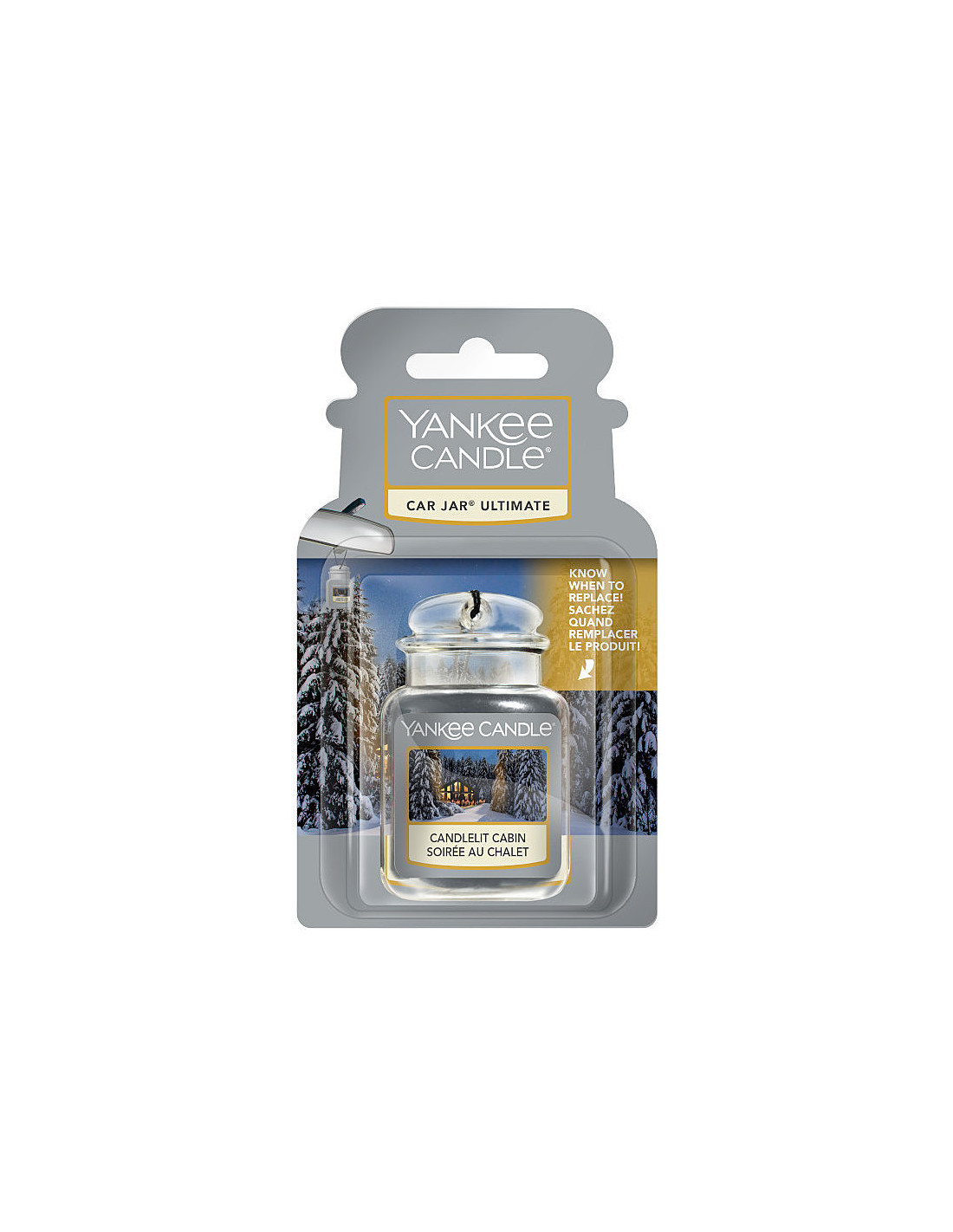 Deodorante per auto Yankee Candle in gel contenuto in una piccola giara di plastica.