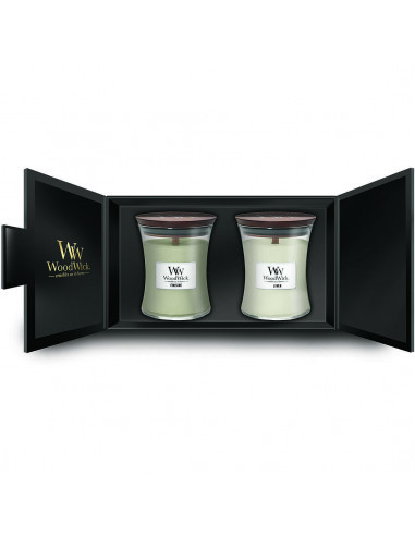 Un elegante cofanetto regalo firmato WoodWick con dentro due clessidre medie.
