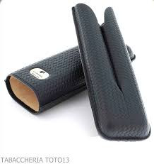 Portasigari affascinante realizzato in finissima pelle lavorata ad incrocio. La custodia da tasca può contenere fino a 2 sigari dal diametro di 18 mm, su di essa si trova una placca color oro con raffigurato il logo Cohiba, la testa dell’indiano.