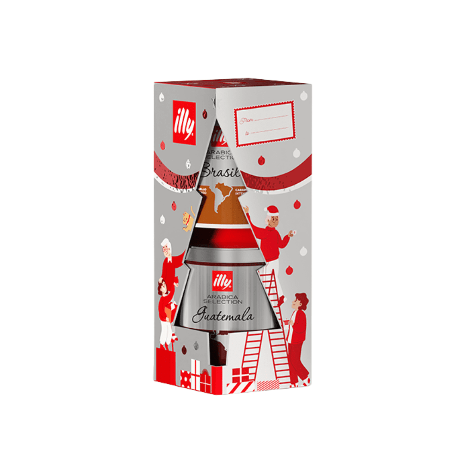 Celebra il rito del caffè con una gift box pensata per stupire. La Confezione Regalo Albero contiene 2 barattoli di caffè macinato Arabica Selection: