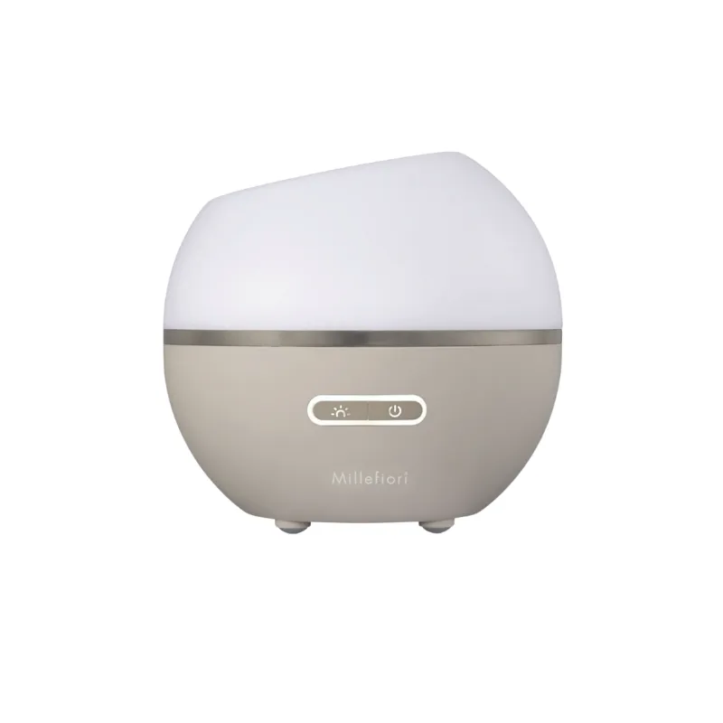Hydro diffusore a ultrasuoni Millefiori Milano dal design a mezza sfera. Profuma e umidifica l’ambiente con nebulizzazione silenziosa e luce rilassante.