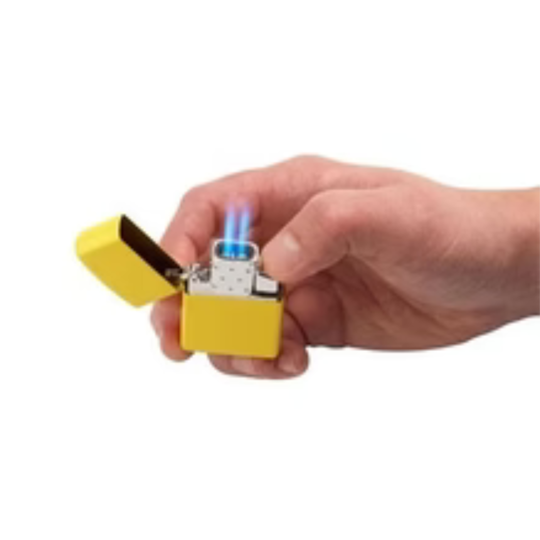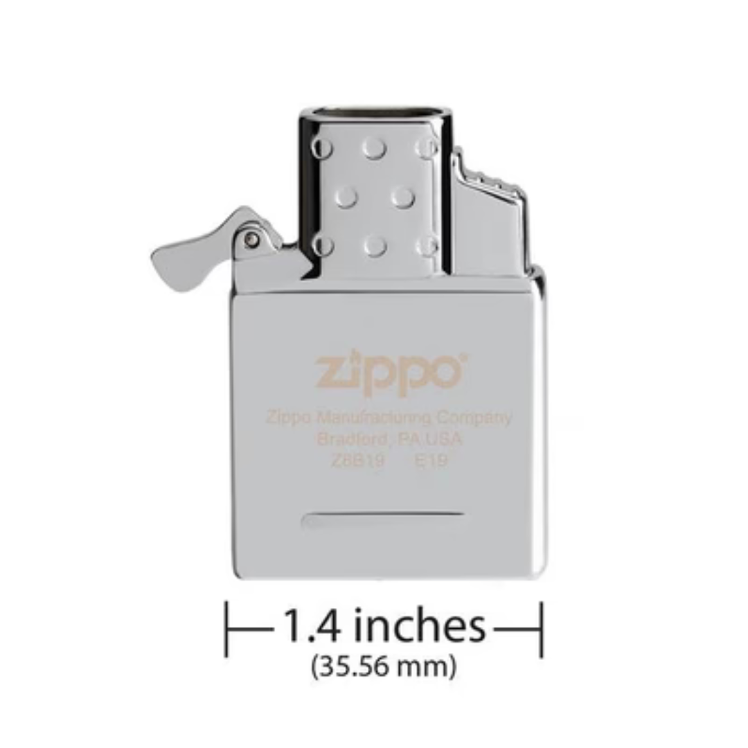 Consegna GratuitaInserto a gas Zippo doppia fiamma: due torce blu regolabili fino a 1.260°C, piezo a pulsante, ricaricabile a butano. Compatibile con Zippo regular (no Slim/1935). Fornisce fino a 60 accensioni di 5 secondi per riempimento utilizzando un’altezza della fiamma di 2,5 cm.