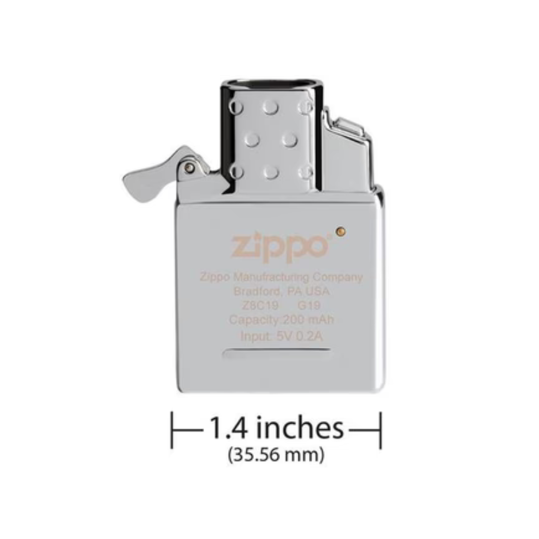 Potenza, praticità e stile Zippo. L’Inserto elettrico ad arco genera due fasci di plasma per un’accensione rapida e antivento, ideale in qualsiasi condizione. Si ricarica facilmente via micro-USB Tempo di ricarica approssimativo di circa 1 ora e 300 ricariche per batteria; include doppio pulsante di accensione e sicurezza timeout 10 secondi.