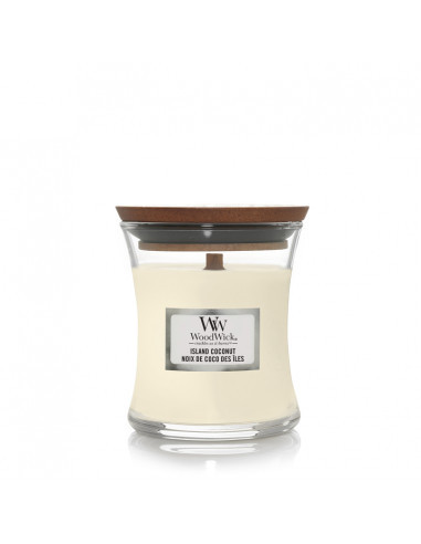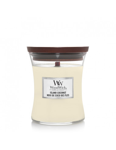 Nella candela Island Coconut di WoodWick l’ananas succoso si sposa con la dolcezza del cocco per un perfetto mix tropicale.