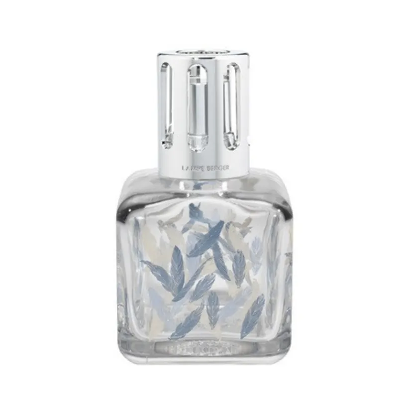 Lampe Berger Glacon Piuma fonde linee essenziali e morbidezza visiva: la geometria cubica dagli angoli arrotondati è valorizzata da un decoro applicato che dona leggerezza e stile, perfetto in interni moderni, minimal o scandinavi. Il coprifiamma classico cromato illumina l’insieme con un accento elegante.