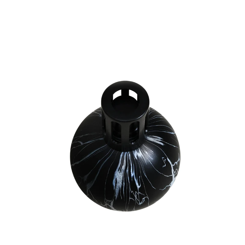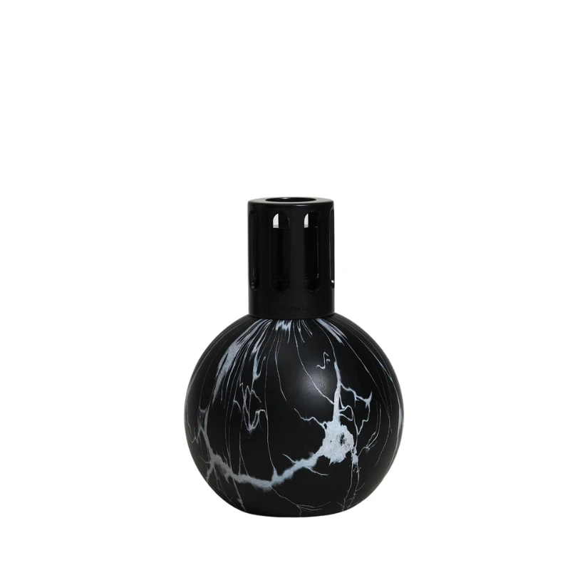 La Lampe Berger Marbrure Noire reinterpreta le forme classiche in chiave contemporanea: la sfera, emblema di Maison Berger Paris, è avvolta da una marmorizzazione nera che gioca con riflessi e trasparenze, donando carattere e raffinatezza a salotti, ingressi e spazi moderni.