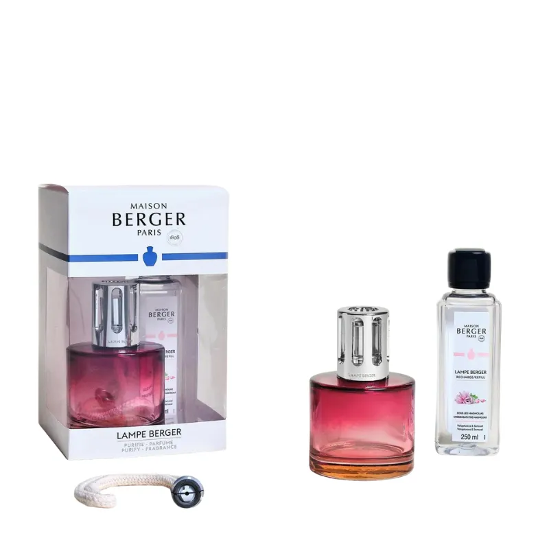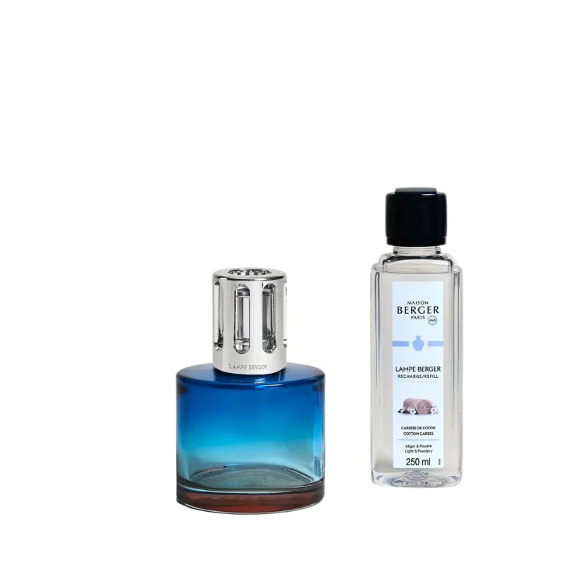 La Lampe Berger PURE unisce eleganza essenziale e funzionalità: il corpo in vetro laccato (disponibile nel colore blu & rosa) dialoga con la montatura dritta argento lucido, trasformando la lampada in un oggetto d’arredo perfetto per ambienti moderni e raffinati.