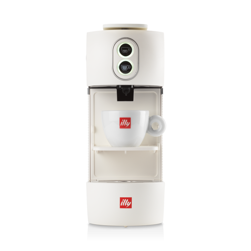 Macchina da caffè Illy per cialde E.S.E. la tecnologia ottimizzata dall’azienda italiana per erogare un caffè vellutato e dal gusto pieno. I due tasti (tazza gande e tazza piccola) consentono di scegliere la tipologia di caffè da erogare: espresso o lungo.