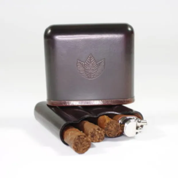 Realizzato in cuoio fiorentino di alta qualità, nel classico colore marrone, unisce resistenza strutturale e cura artigianale dei dettagli. Il design compatto consente di contenere fino a 4 sigari ammezzati, rendendolo ideale per accompagnare l’appassionato durante la giornata.