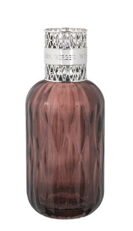 Una fascia sul coprifiamma firma ogni lampada. Il gioco di maglie riveste e dona sofisticatezza al flacone.