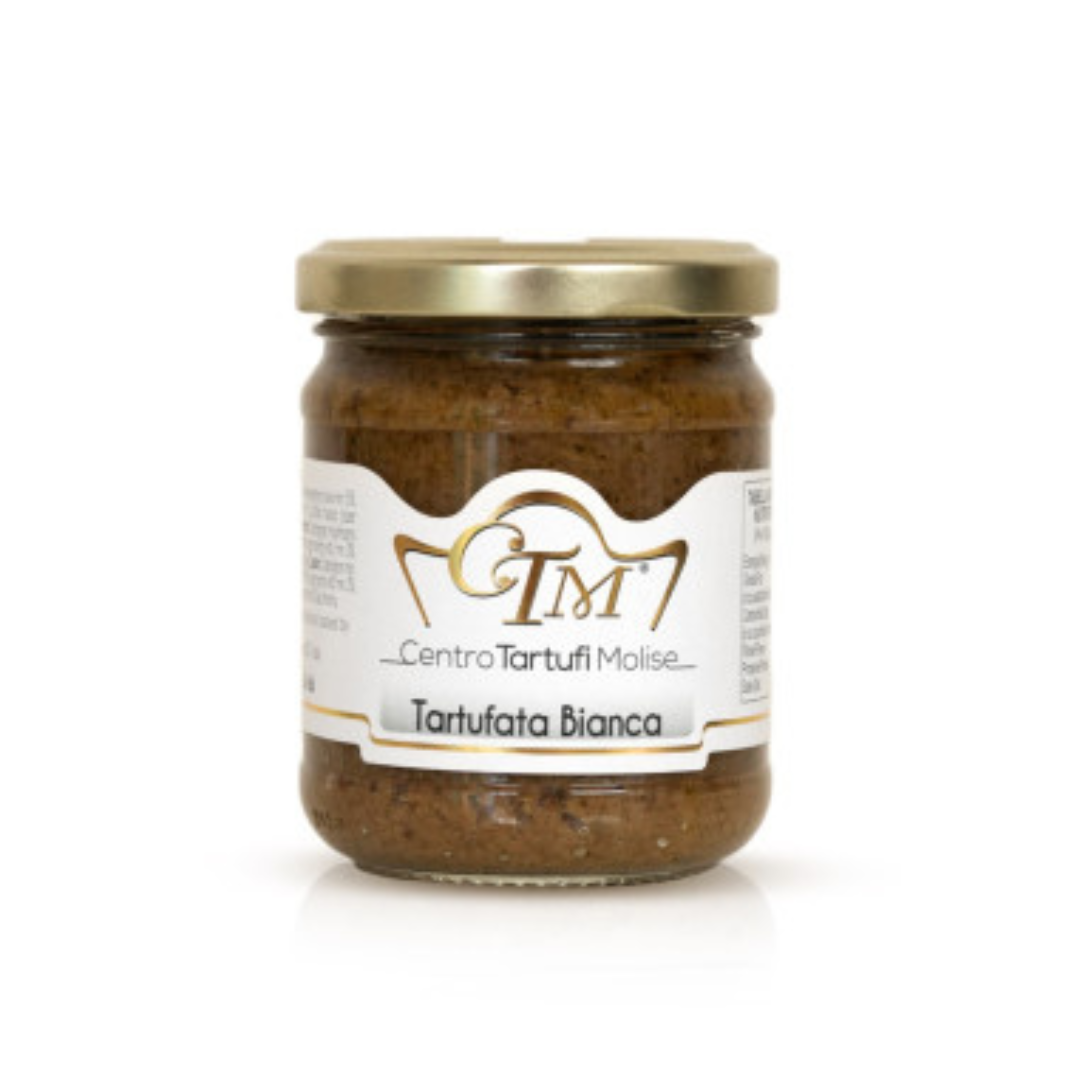 La tartufata bianca è preparata con funghi champignon, tartufo bianco pregiato, tartufo bianchetto e olio extravergine di oliva.