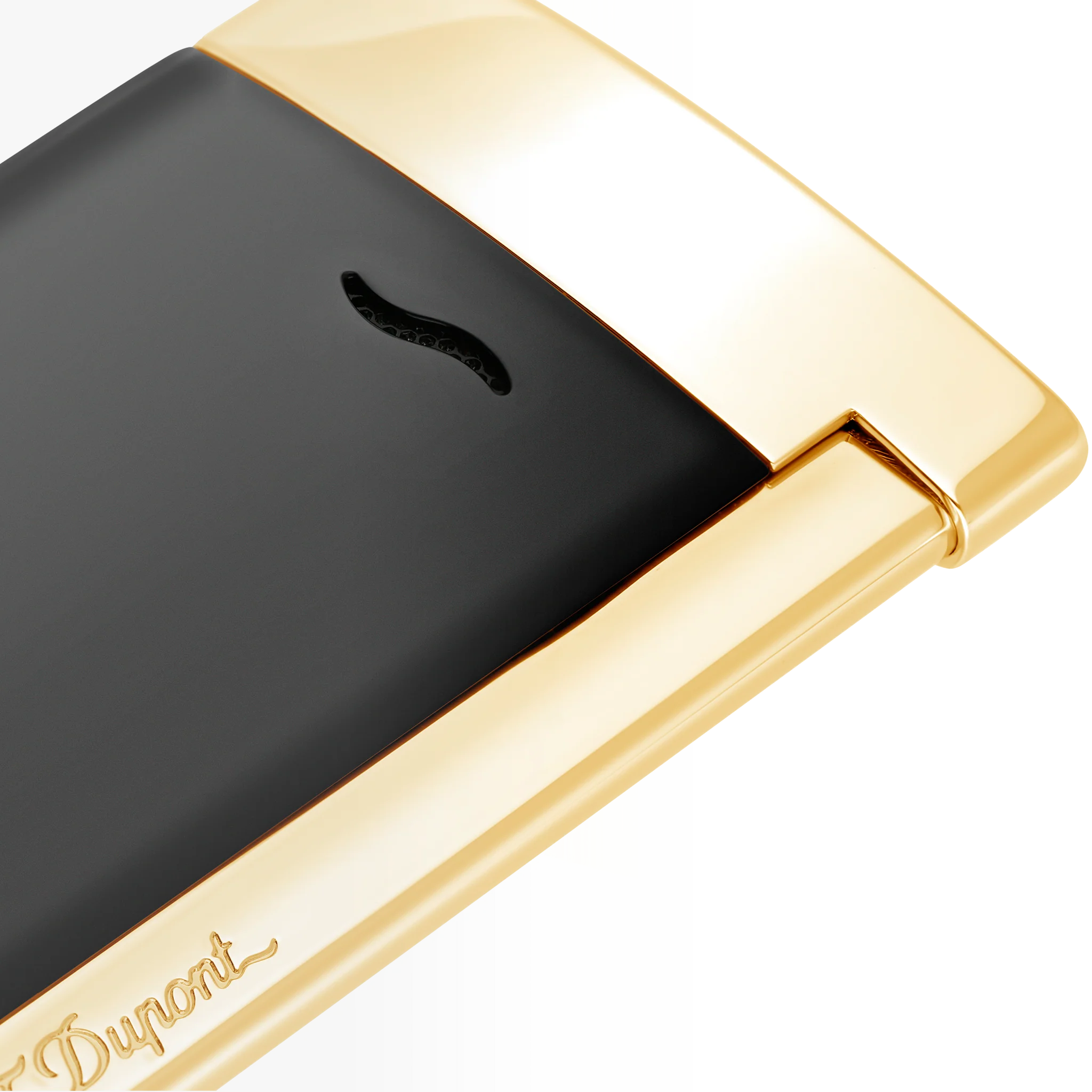 Eleganza iconica in formato tascabile. Slim 7 Nero & Oro unisce la laccatura nera profonda alla finitura dorata per un contrasto raffinato e contemporaneo. Con 7 mm di spessore e 45 g, è l’accendino di lusso più sottile al mondo: scivola in tasca o pochette senza ingombro, sempre pronto all’uso.