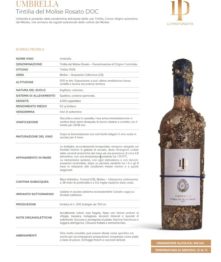 Umbrella è prodotto dalla vendemmia anticipata delle uve Tintilia, l’unico vitigno autoctono