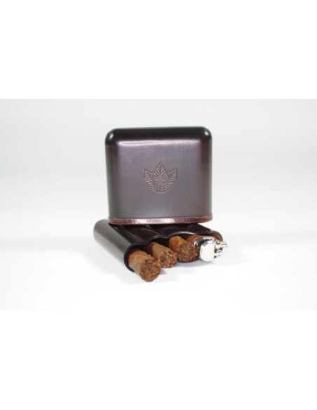 Egoist Portasigari Sagomato Robusto nero in pelle per 3 sigari.