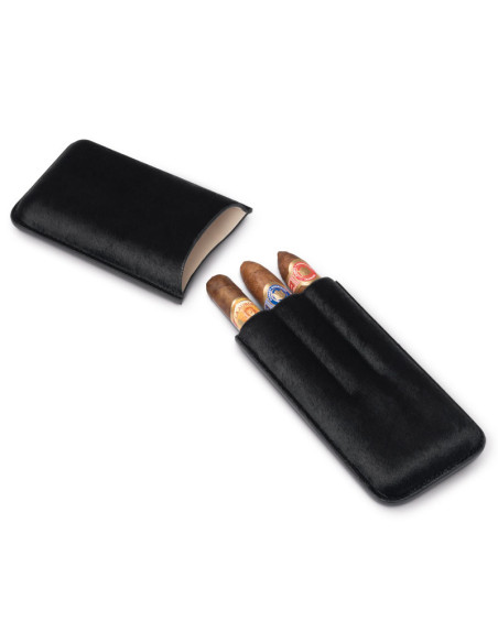 Elegante portasigari sagomato da 3 pezzi in vera pelle di cavallino.